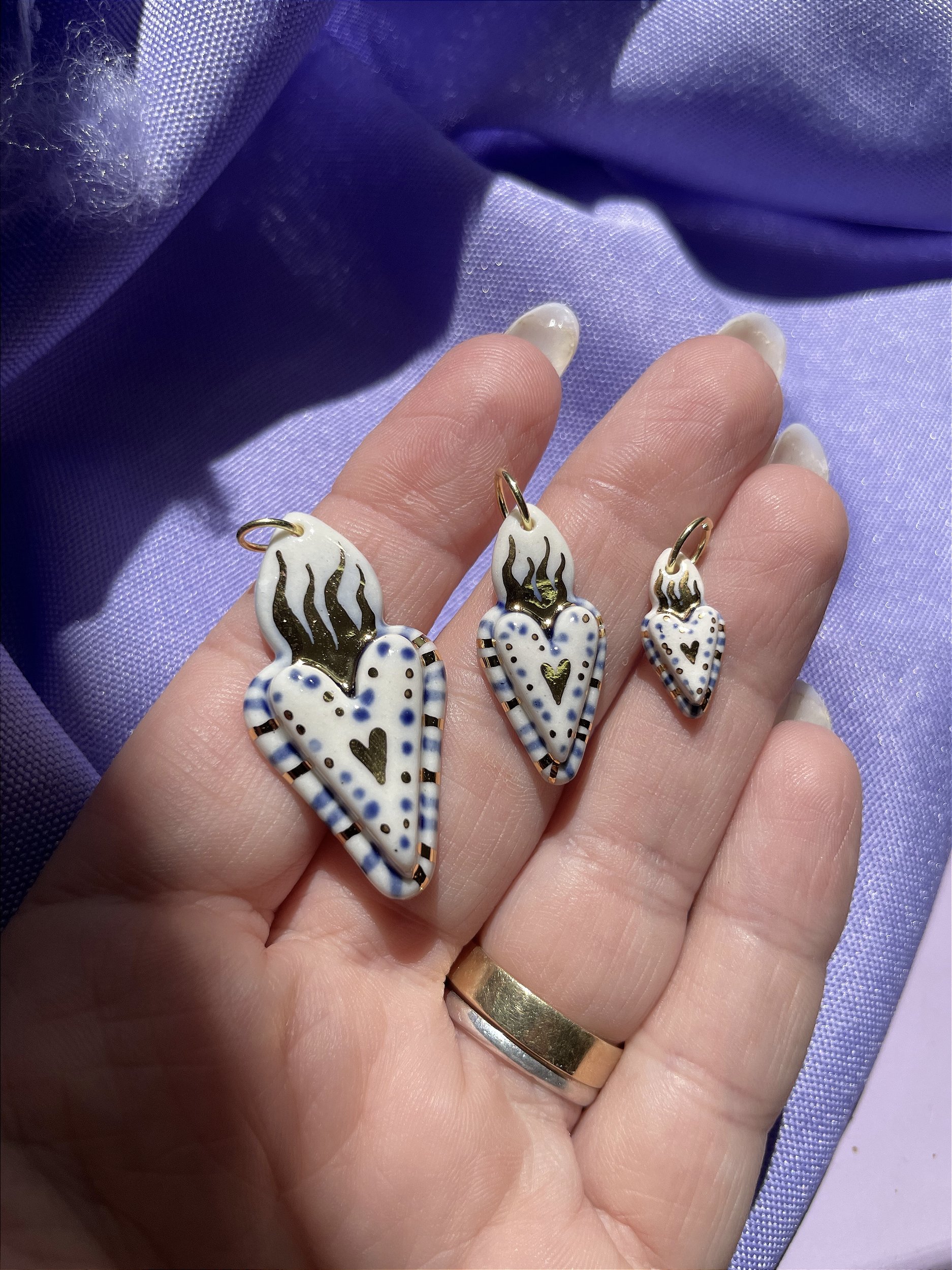 Pingente modelado à mão na porcelana de alta temperatura. Passa por 3 queimas. Possui pintura em ouro líquido 18K✨